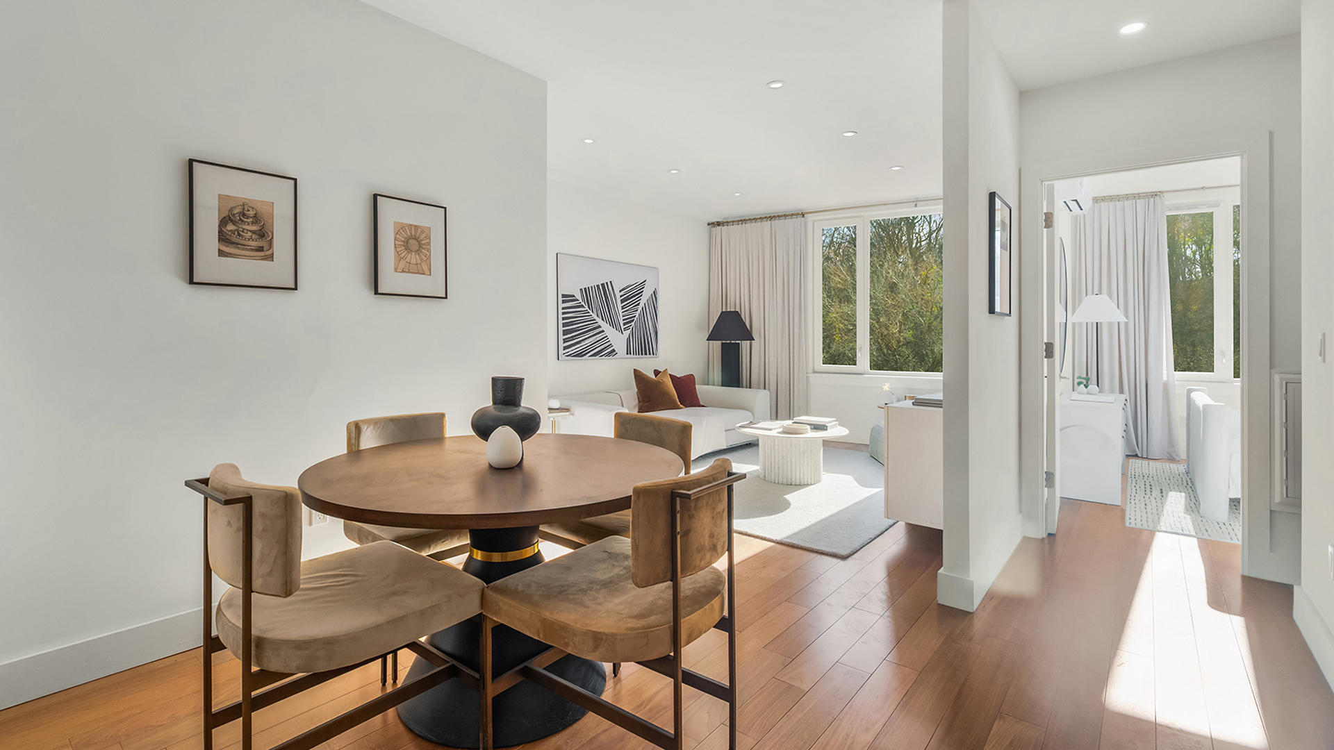 The calm of nearby parks echoes throughout each residence,