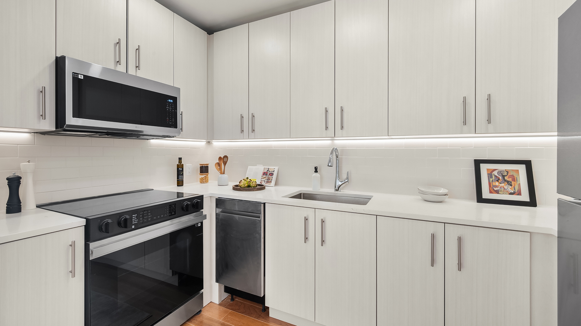 Clean, crisp fixtures energize and brighten the room at the heart of the home, each kitchen hosts the proper amenities for easy living.